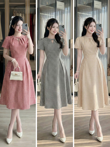 Màu Sắc : Đầm có 3 màu: Đỏ, Nâu & Đen